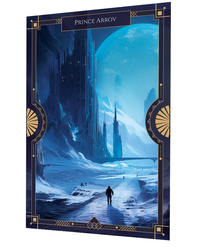 Prince Arrov was born of A’ice, in Galaxy Five, (Galaxy Date: 35,874). He is the seventh son of Queen Amra and a great pilot. He had a happy childhood but craved adventures. At the age of twenty-four, he joined the Uhnan rebels, and met Lilla.