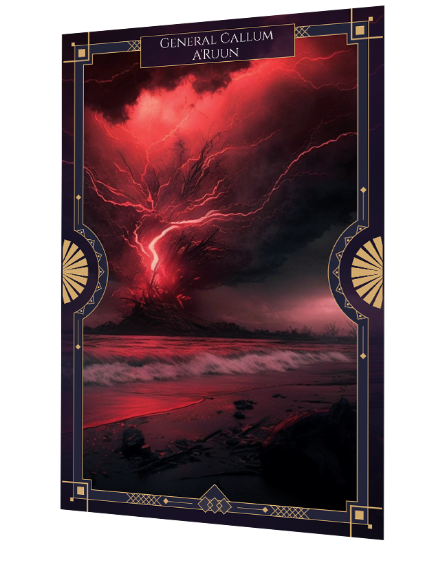 General Callum was born and raised on the Teryn planet in Galaxy Six (Galaxy Date: 35,873). At the age of twenty-five, he was sent to Uhna, Lilla’s homeworld to negotiate an alliance between them and the Teryn Praelium. He also brought news of the Era War.